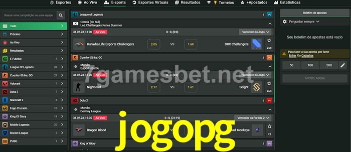 O jogopg oferece uma grande seleção de opções de apostas em e-sports com probabilidades competitivas